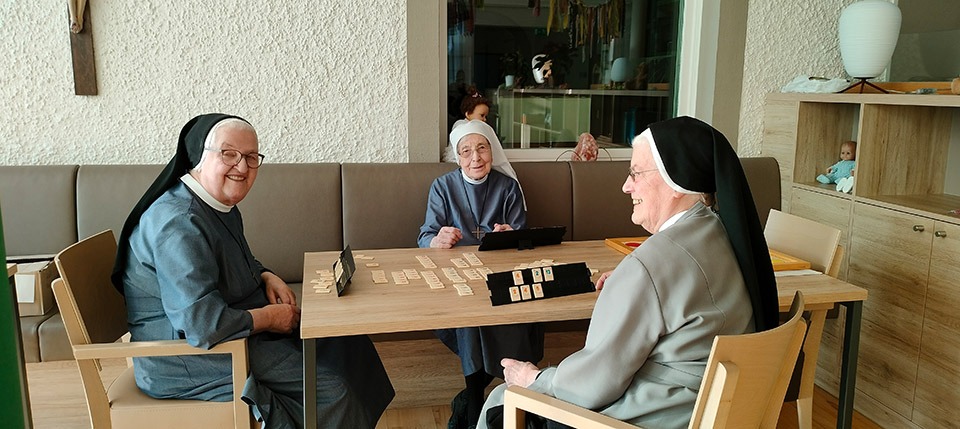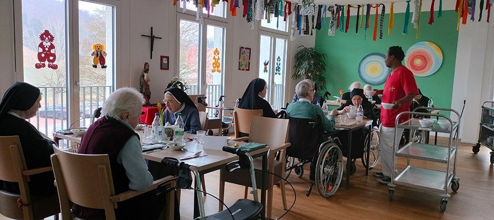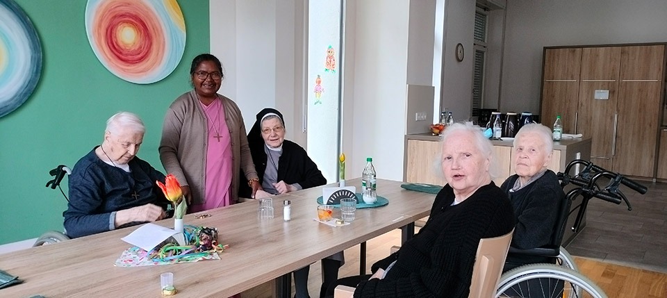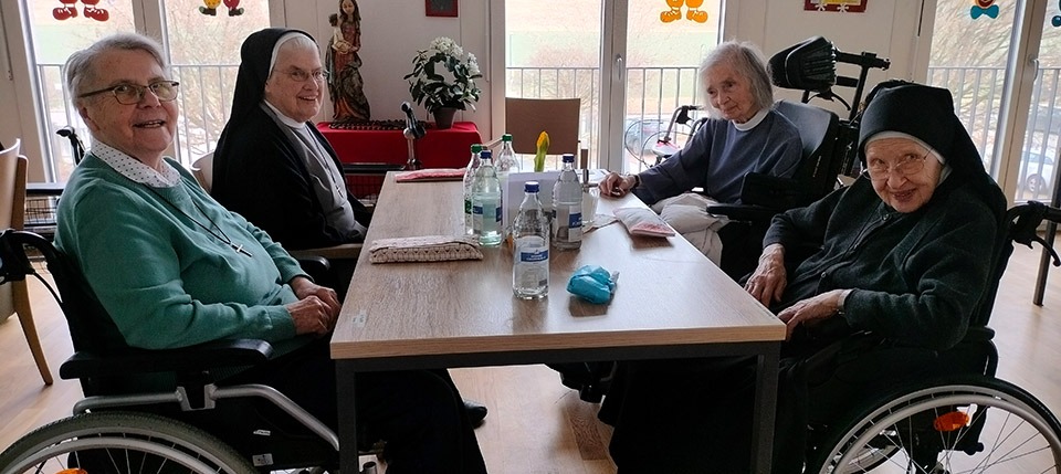Die Gemeinschaft besteht aus hochbetagten Schwestern, von denen viele aufgrund des hohen Alters, von Krankheit, früheren Operationen Hilfe benötigen oder ganz auf Pflege von Fachkräften angewiesen sind. Dennoch leben sie ihre Berufung in grosser Hingabe