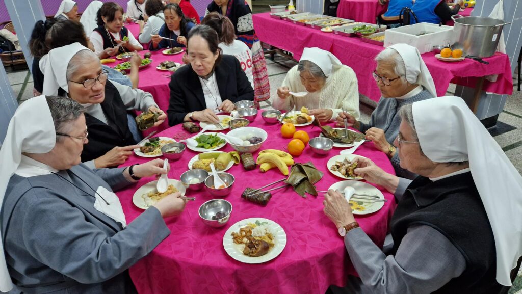 Nach einem reichhaltigen Abendessen zeigten die Frauen verschiedene Volkstänze, zu denen die Schwestern zum Mittanzen eingeladen wurden. Der Abend klang mit dem Anschneiden und Geniessen der Torte anlässlich des chinesischen Neuen Jahres aus.